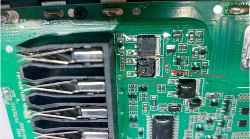 При внешнем осмотре выявилась проблема - похоже сломался транзистор