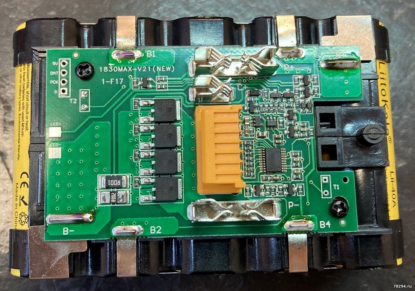 Поддельная батарея с али BL1830 (BL1815) с самой плохой из плат управления, да еще и подключена не полностью: