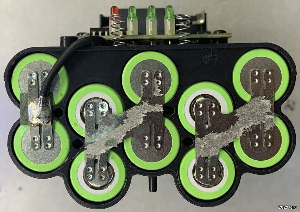 Отремонтировал еще одну акб, там конечно лопнули проводники всего лишь, но из-за неправильного хранения все равно уже все элементы умерли: