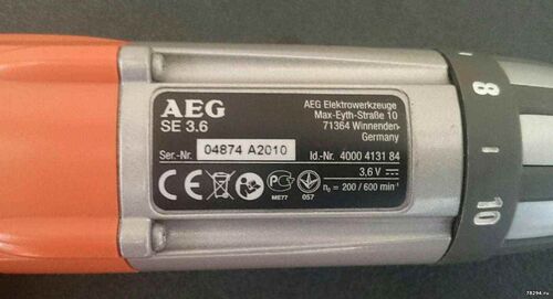 Аккумуляторная отвертка AEG SE 3.6 схема и ремонт Отвертка AEG SE 3.6 Li 4935413165