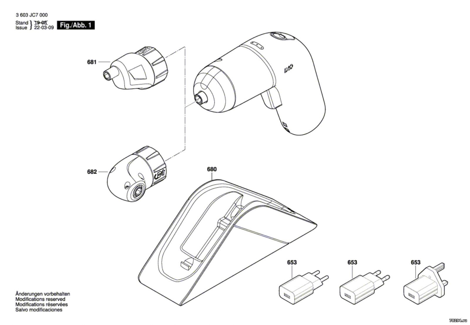 653 2 609 120 713 ЗАРЯДНОЕ УСТРОЙСТВО EU 100-240V 5V 1A 653 2 609 120 716 ЗАРЯДНОЕ УСТРОЙСТВО KR 100-240V 5V 1A 653 2 609 120 717 ЗАРЯДНОЕ УСТРОЙСТВО AUS 100-240V 5V 1A 653 2 609 120 718 ЗАРЯДНОЕ УСТРОЙСТВО GB 100-240V 5V 1A 654 1 607 000 CG9 USB Кабель 680 1 600 A01 AU1 УСТАНОВКА ДЛЯ ЗАРЯДА красный 680 1 600 A01 B58 УСТАНОВКА ДЛЯ ЗАРЯДА зеленый 681 2 609 003 218 НАСАДКА 682 2 609 002 364 УГЛОВОЙ РЕДУКТОР