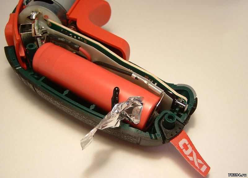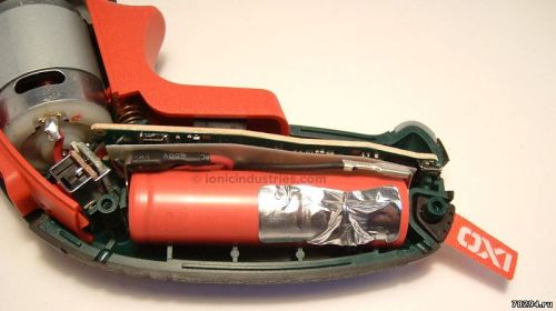 BOSCH IXO5 3,6V разборка, замена батареи в BOSCH IXO5 очень простая и заключается в замене элемента 18650, причем можно ставить намного более емкие элементы на 3ач