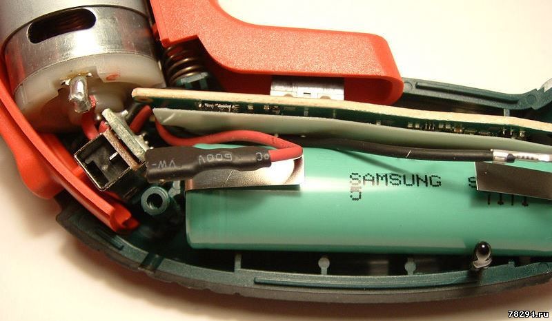 Обратите внимание, что положительный полюс аккумулятора находится ближе всего к двигателю в этой версии отвертки Bosch IXO. В других версиях Bosch IXO батарея была установлена наоборот, поэтому внимательно обратите внимание на полярность оригинальной батареи. Вы можете быстро сфотографировать его, прежде чем снимать, чтобы напомнить вам. На внешней стороне батареи рядом с положительным концом есть канавка, которая помогает идентифицировать ее.