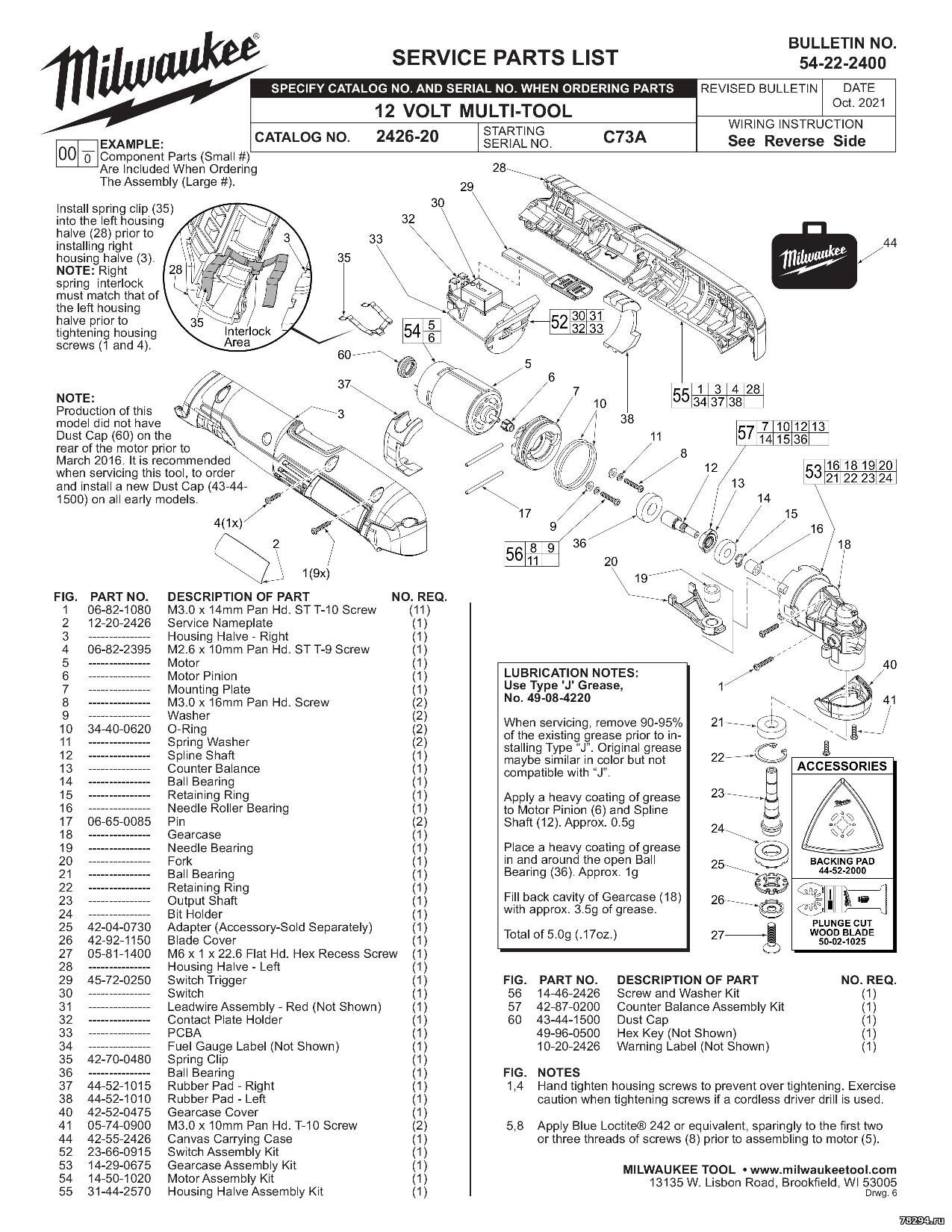 Форум Электроинструмент Разборка, ремонт и обзоры электроинструментов Milwaukee Аккумуляторный реноватор Milwaukee 2426-20 схема и ремонт (M12) |