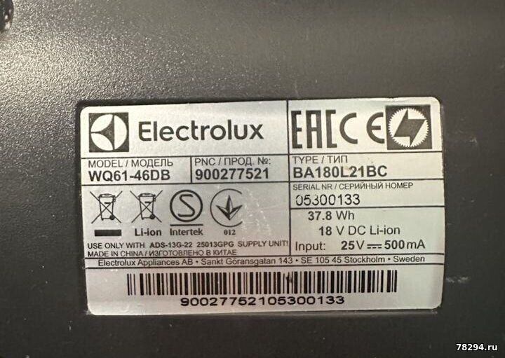 Пылесос вертикальный Electrolux WQ61-44SW ремонт Electrolux WQ61-46DB ремонт 18в Li babp180li21