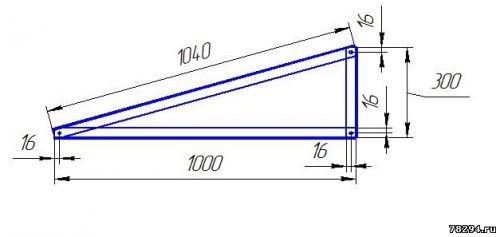 Сначала все материалы привозятся до подъезда где из них предварительно выпиливаются все заготовки. Профильная труба режется пополам по 3 метра, лист, который пойдет на крышу режется на 3 куска по 1 метру, а уголок режется на 4 куска по 1 метру, 4 куска по 1,04 метра и 4 куска по 30см. Все заносим в квартиру. В уголках, которые по 30 см, сверлим по 2 отверстия диаметром 13 мм под крепежные анкера отступая от края 5см. В уголках длиной 1,04м сверлим по 2 отверстия диаметром 7мм, отступая от концов по 5 см, для крепления профильной трубы. В уголках длиной 1,04м, 1м и 30см сверлим по 2 отверстия диаметром 9мм, отступая от концов по 16 мм, для сборки в треугольник (если есть сварочный аппарат то проще сварить все).