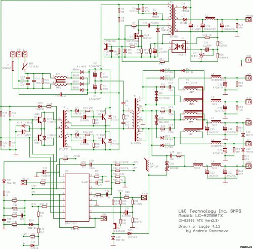 Схемы блока питания L & C Technology Co. модель LC-A250ATX