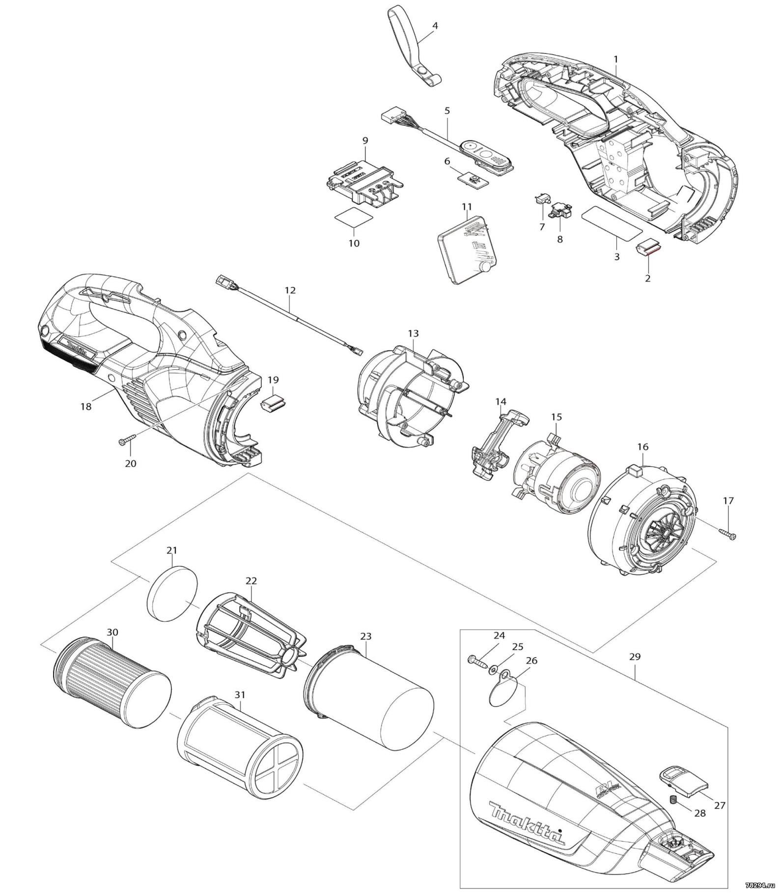 Пылесос Makita DCL284F схема