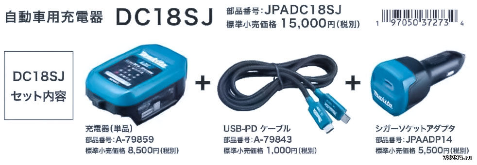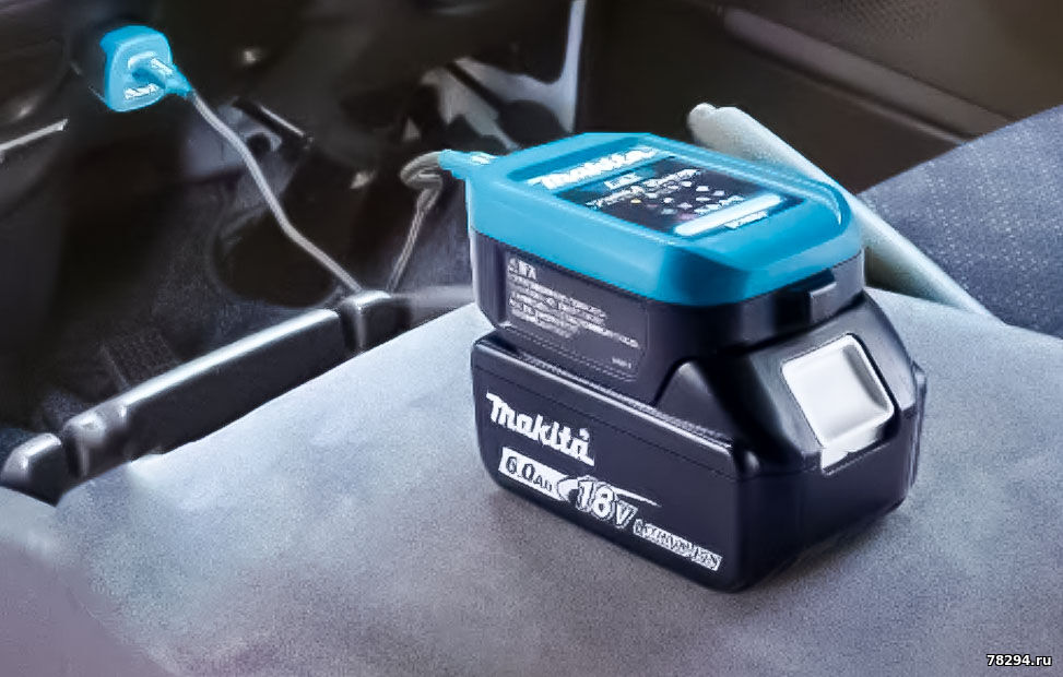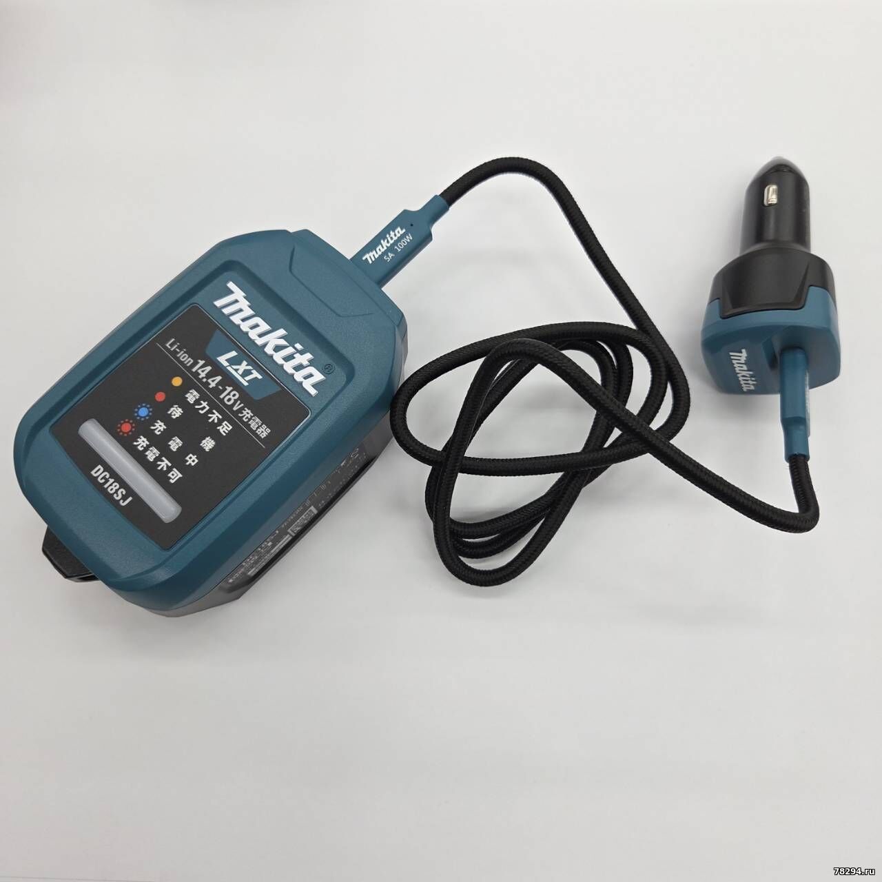 В комплект входят зарядное устройство A-79859, адаптер для прикуривателя ADP14 и USB-кабель. Совместимо с напряжением 14,4 В и 18 В. Зарядка невозможна, если выходная мощность адаптера и кабеля менее 60 Вт. Время зарядки: BL1820B: приблизительно 38-50 минут; BL1860B: приблизительно 100-145 минут. Например, для зарядки BL1860B в автомобиле требуется приблизительно 65 Вт мощности, поэтому время зарядки составляет приблизительно 145 минут. При использовании розетки 100 В и входной мощности 100 Вт время зарядки составляет приблизительно 100 минут.