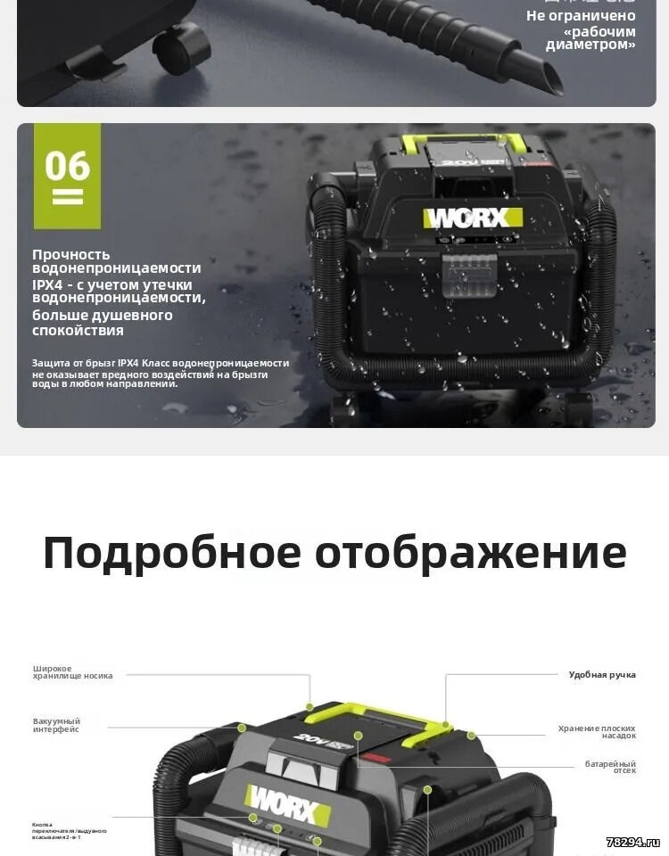 - Напряжение: 20 В (платформа Worx Powershare).