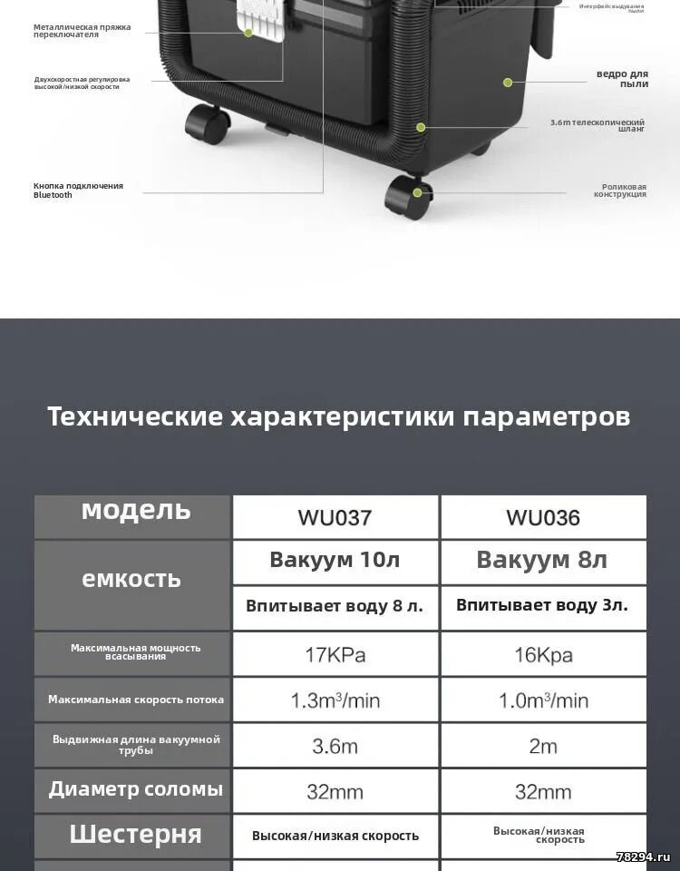 - Тип уборки: Сухая и влажная.