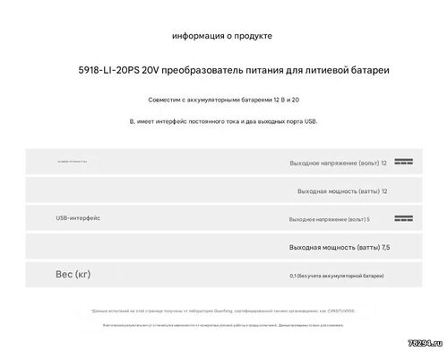 Зарядное устройство DEVON 5918-Li-20PS имеет следующие технические характеристики: